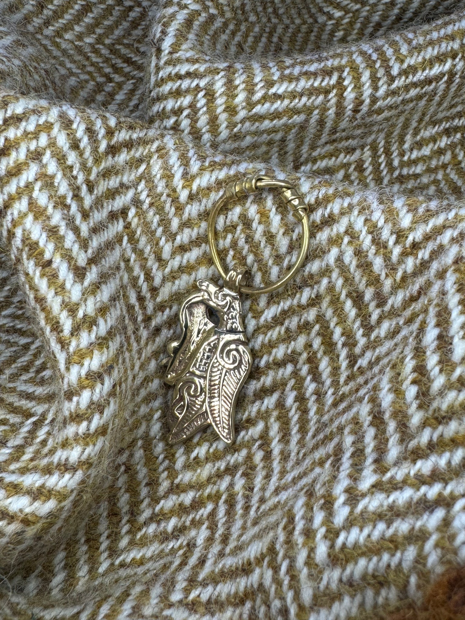 Based on a bronze mount found during excavations at modern day Bamburgh castle in North eastern England. My own sculpt inspired by the design is hand sandcast and heavily worked by hand with hand tools before polishing.